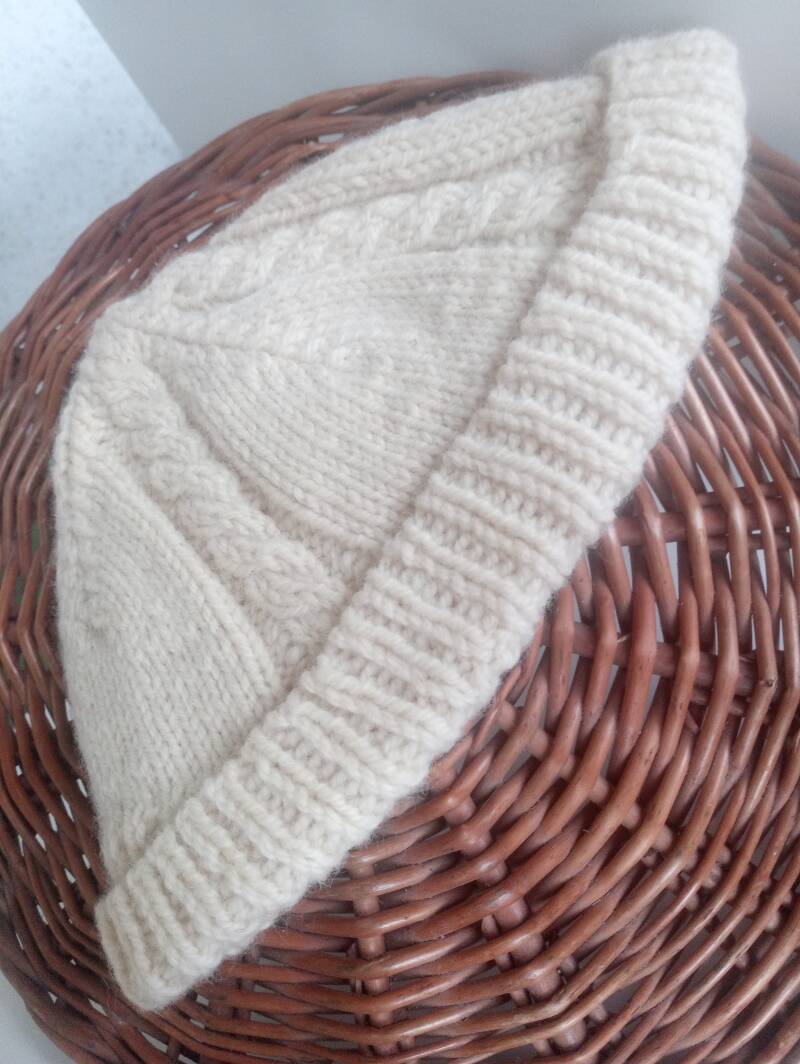 Mütze aus dem mittleren Garn (4/3, 133m je 100g), gestrickt mit Nadelstärke 4.