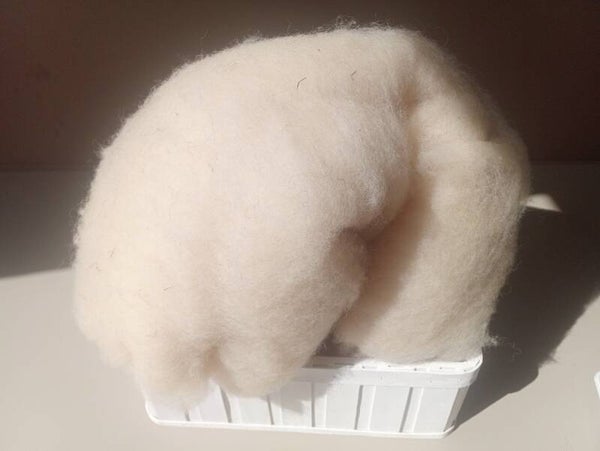 Kleinstmengen werden von mir per Hand kardiert. Das ist natürlich viel aufwändiger als etwas über die großen Maschinen zum Krempeln zu schicken. Dafür gibt es allerdings eine Mindestmenge von 1kg.