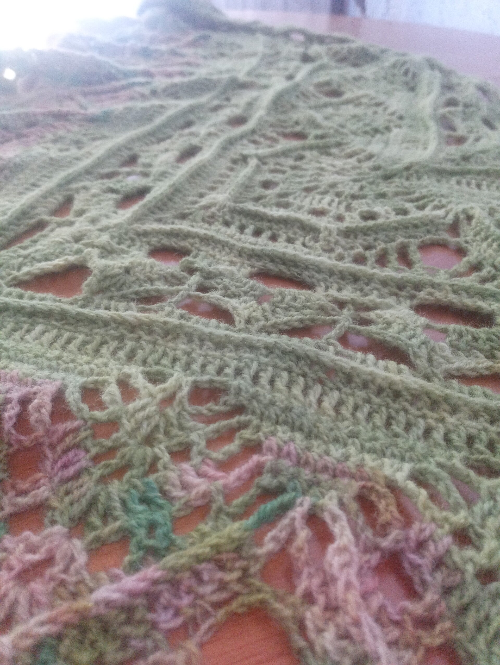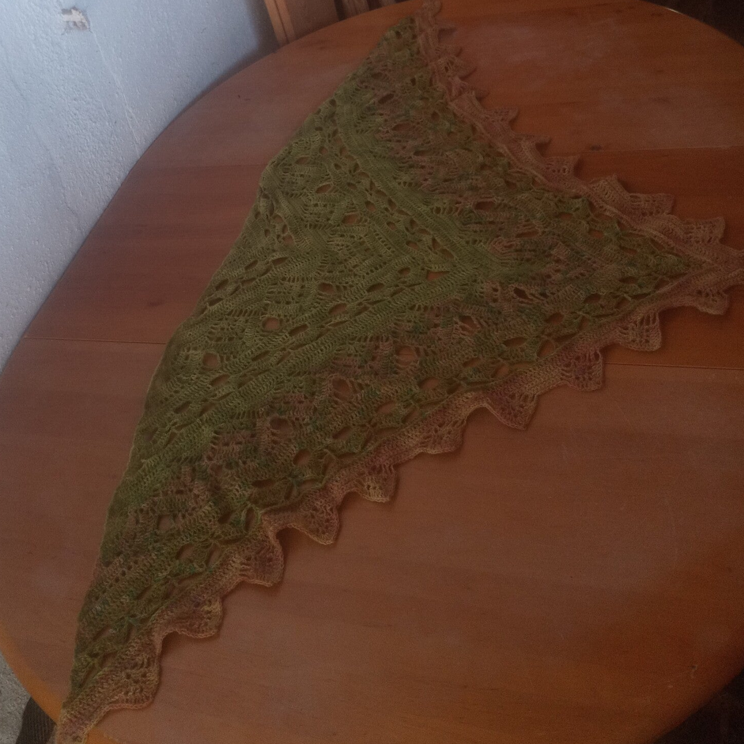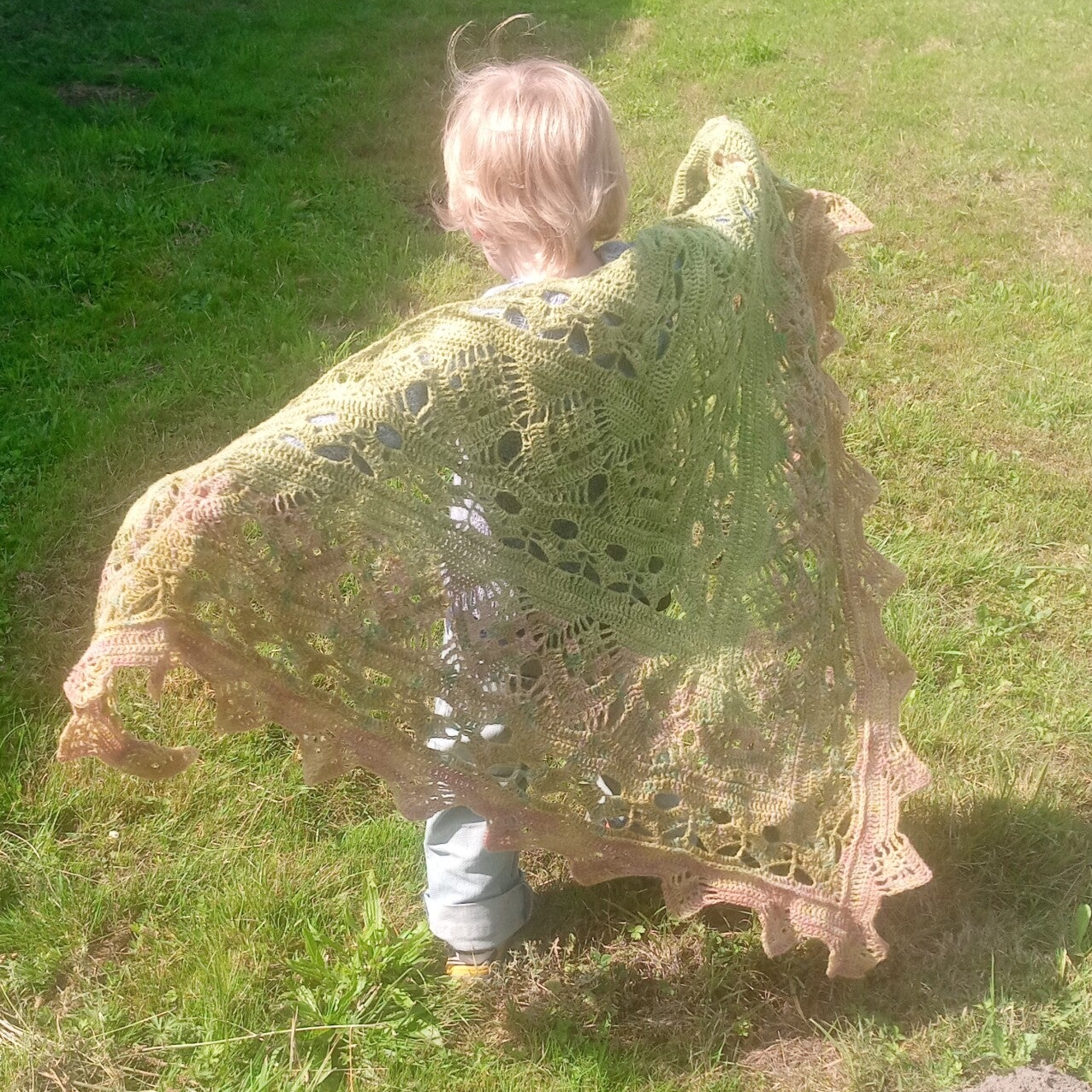 Du erhältst ein fertiges Tuch aus allen drei Farben der Handfärbung "Blätter". Das Tuch ist von Hand gehäkelt in der dünnsten der vier Garnstärken. Es wird nach Bestellung extra für dich angefertigt. Daher beträgt die Lieferzeit etwa 2 bis 4 Wochen.