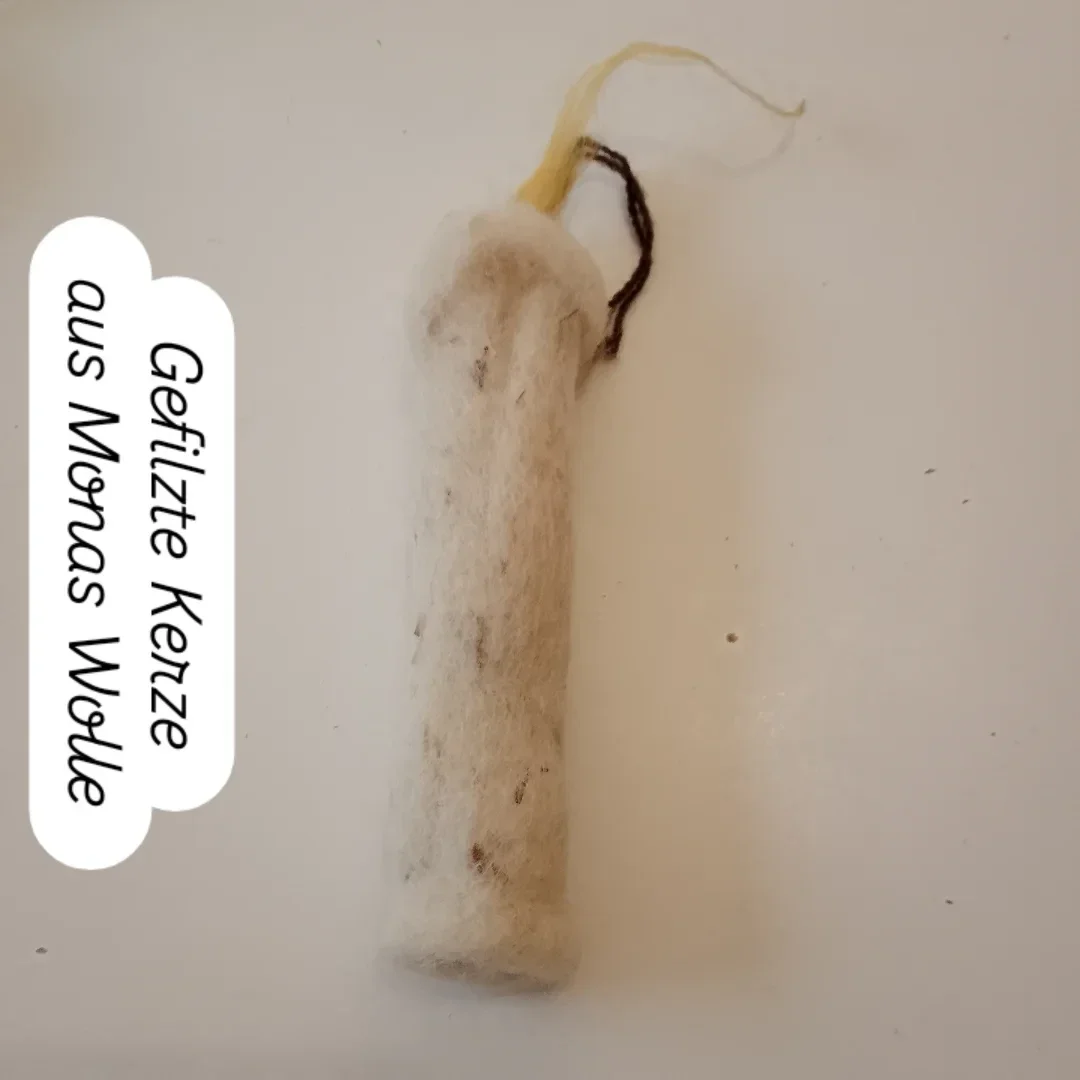 Kerze: Wolle und Zusatzmaterial reicht für eine große oder vier kleine Filz-Kerzen