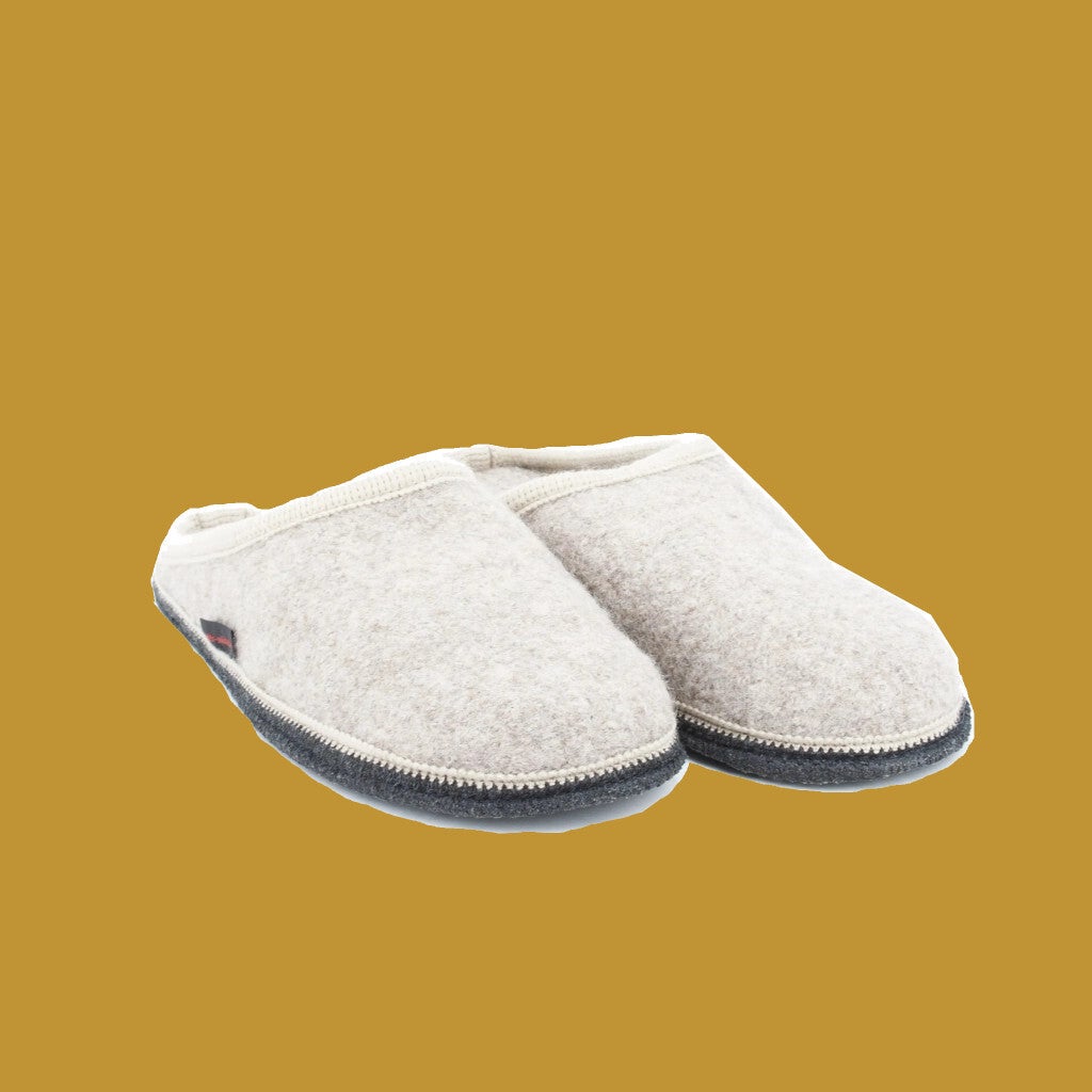 Der Walkstoff wird in einer Manufaktur in Tirol hergestellt. Der Hausschuh wird in naturweiß hergestellt und kann im Schonwaschgang bei 30°C gewaschen werden.